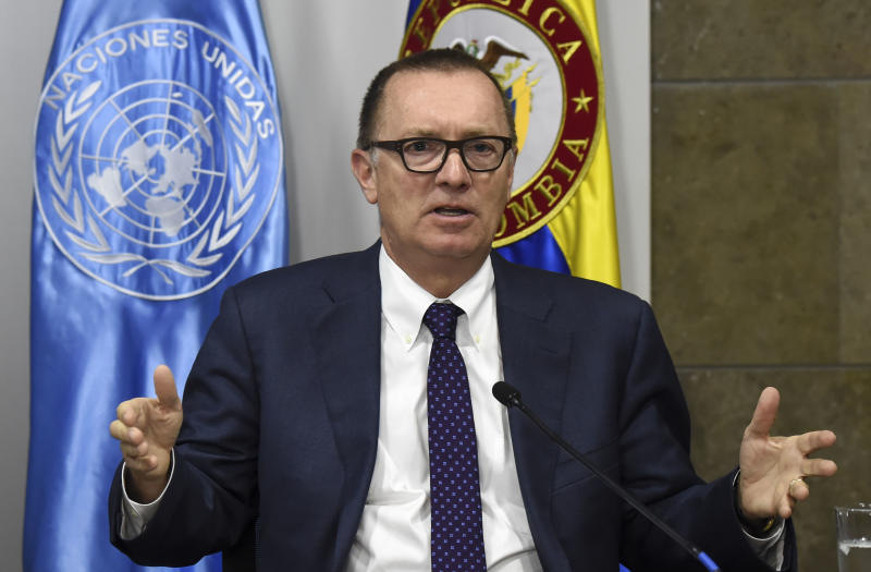 UN under secretary general for political affairs Jeffrey Feltman attends a press conference in Bogota on Nov 15, 2017.