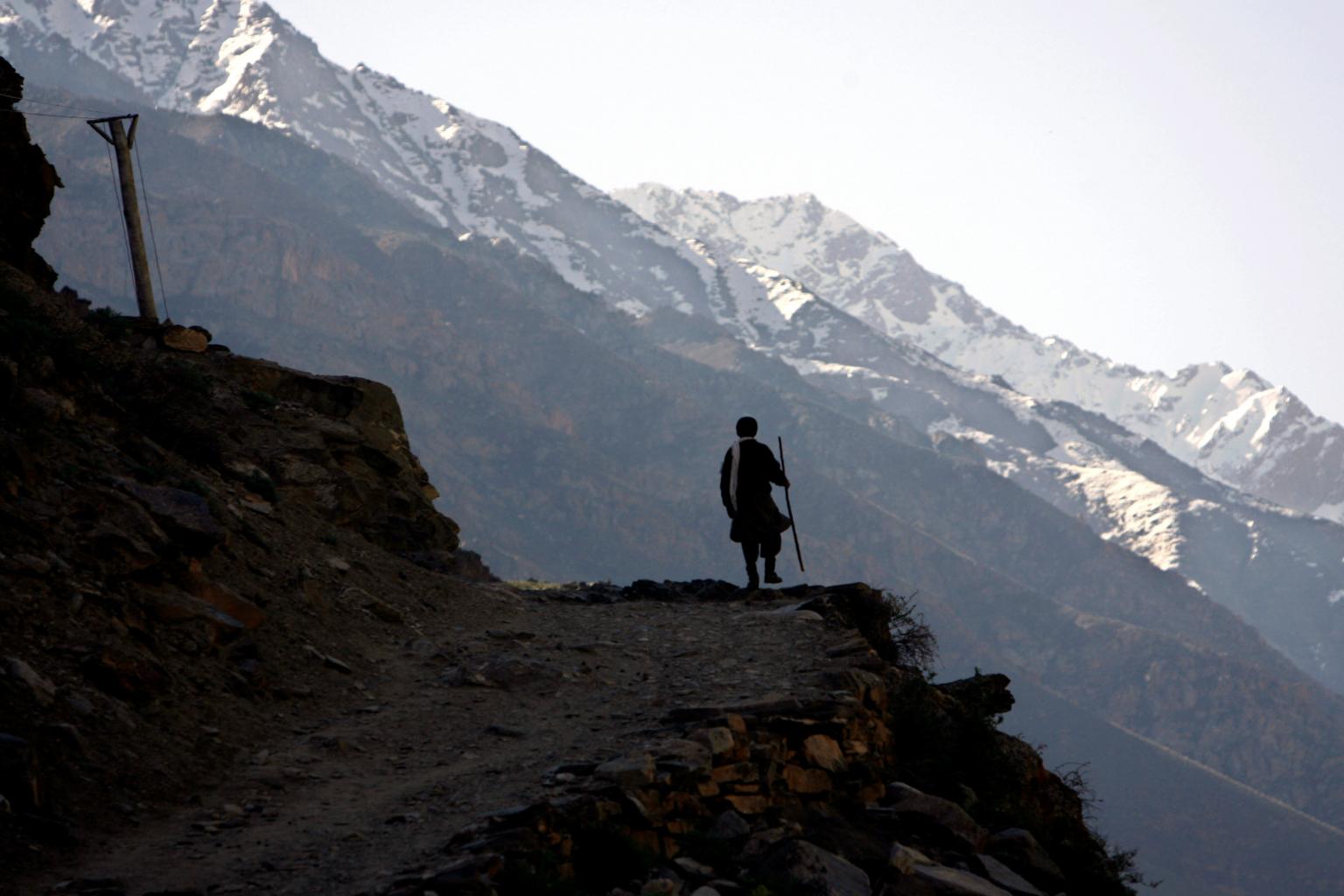 An Afghan miner walks up to the emerald mines in the mountains of the Panjshir Valley, north of Kabul on April 20, 2007.