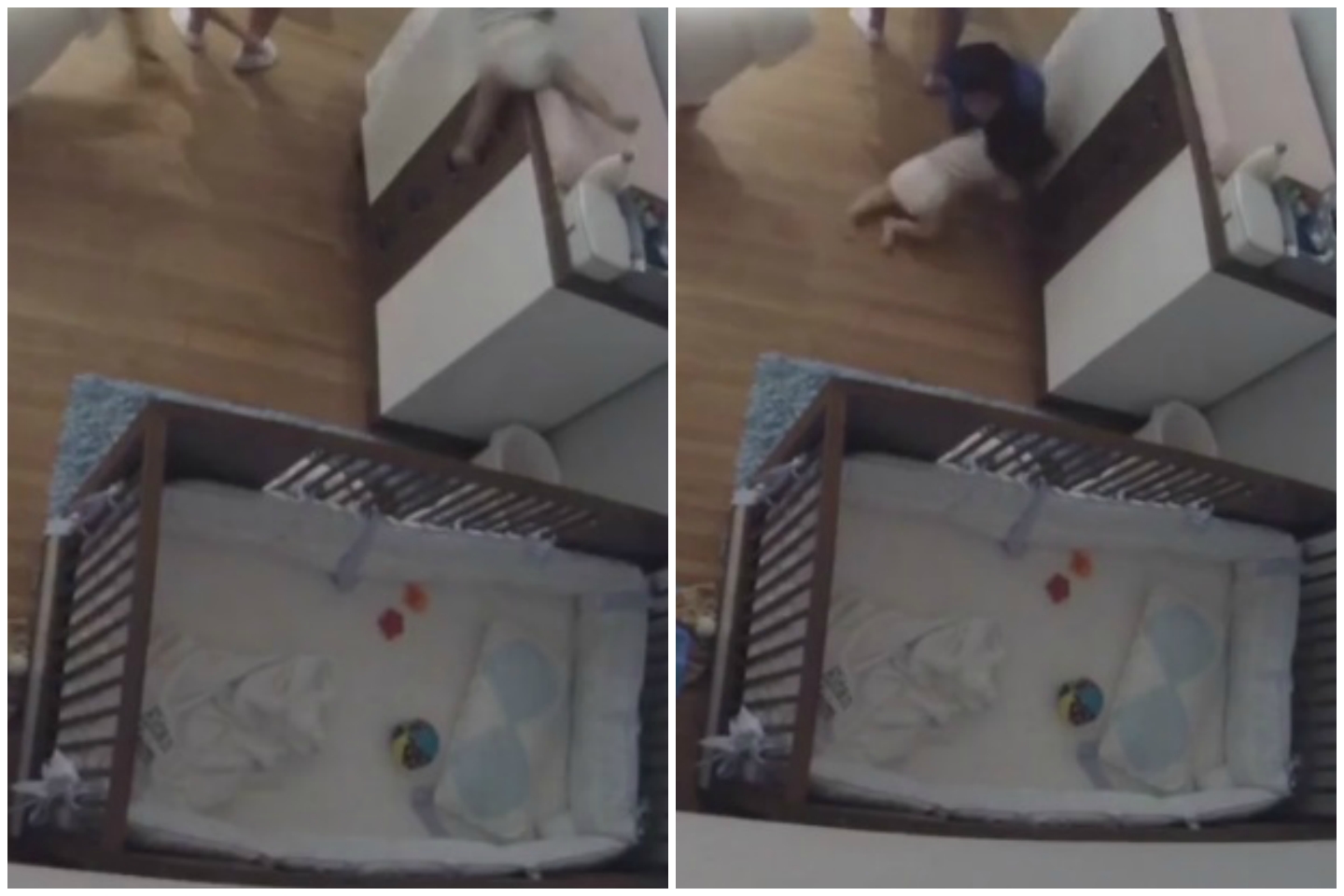 But just before he hit the ground, Joseph dashed over with his arms outstretched and caught his sibling in the nick of time.