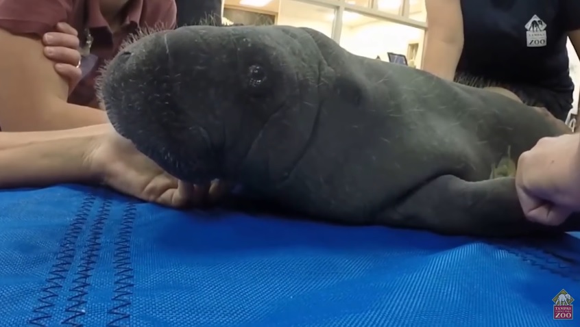 Orphaned manatee Emoji being treated at the zoo before his death.