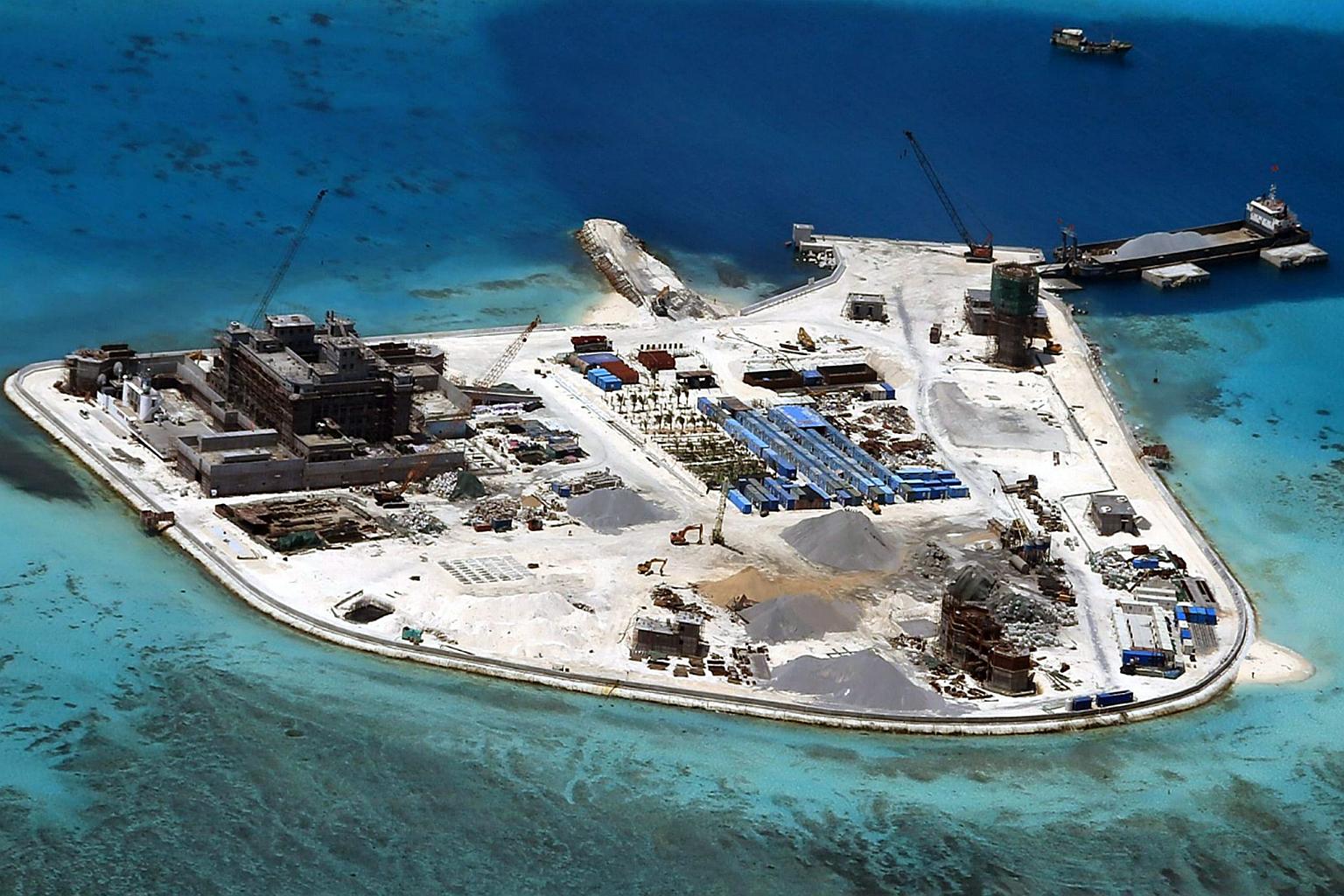 A file handout picture dated Feb 18, 2015, shows an aerial view of construction at Mabini (Johnson) Reef by China, in the disputed Spratley Islands, in the south China Sea.