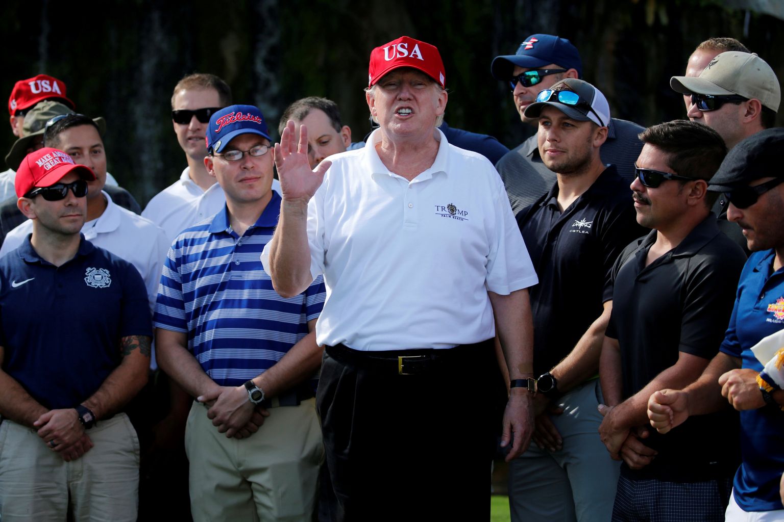 Trump delivers brief remarks as he plays host to members of the US Coast Guard in Florida.