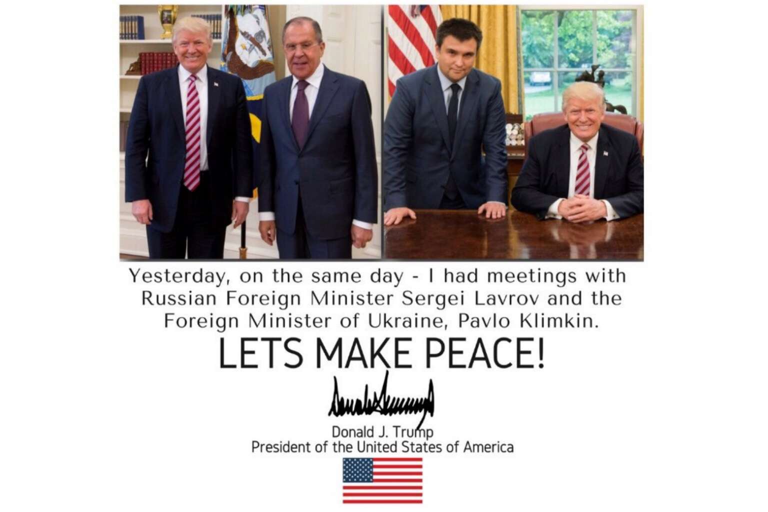 "Yesterday, on the same day - I had meetings with Russian Foreign Minister Sergei Lavrov and the FM of Ukraine, Pavlo Klimkin. #LetsMakePeace!" the US president tweeted.