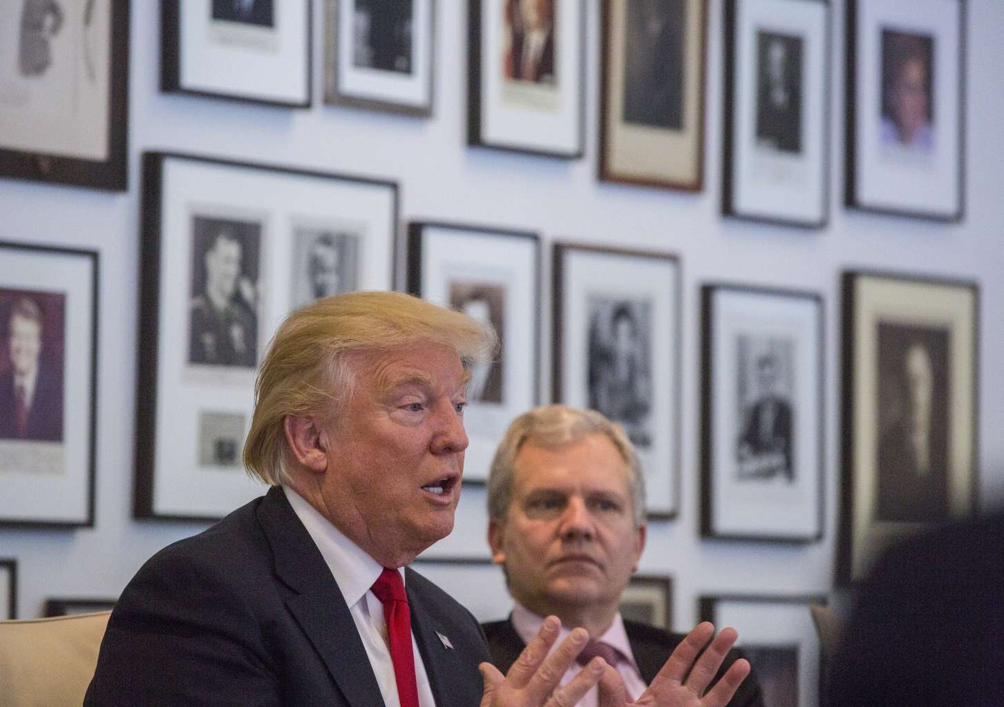 President-elect Donald Trump during a meeting with Arthur Sulzberger Jr (right) publisher of the New York Times, along with reporters, editors and columnists from the paper, at the Times building in New York, Nov. 22, 2016.