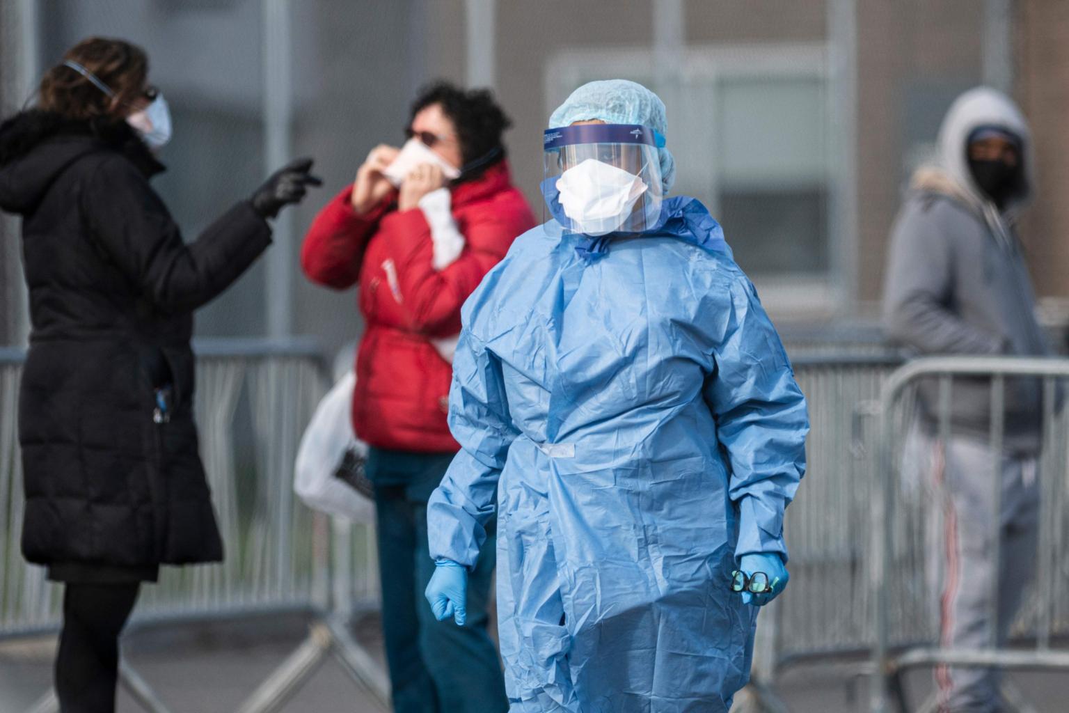 A medical worker at the NYC Health Hospital at the Covid-19 testing site on April 22, 2020, in the Queens borough of New York City.