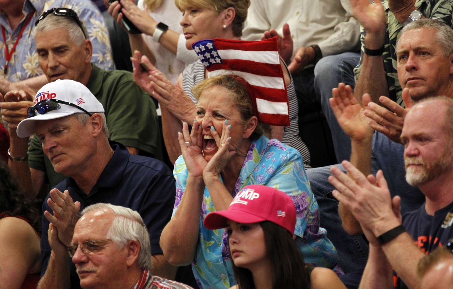 Supporters of Donald Trump cheer for the Republican party candidate in Colorado Springs, Colorado, on July 29, 2016.