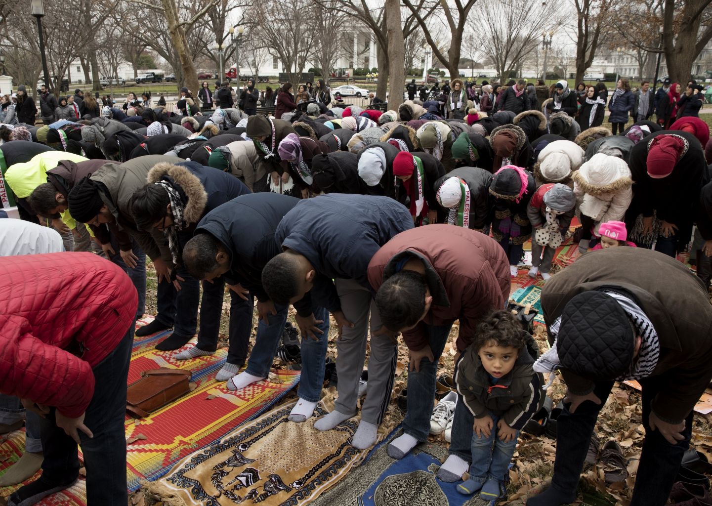 Responding to the call of American Muslim organisations, worshippers laid out their prayer mats at a park in front of the President's residence.