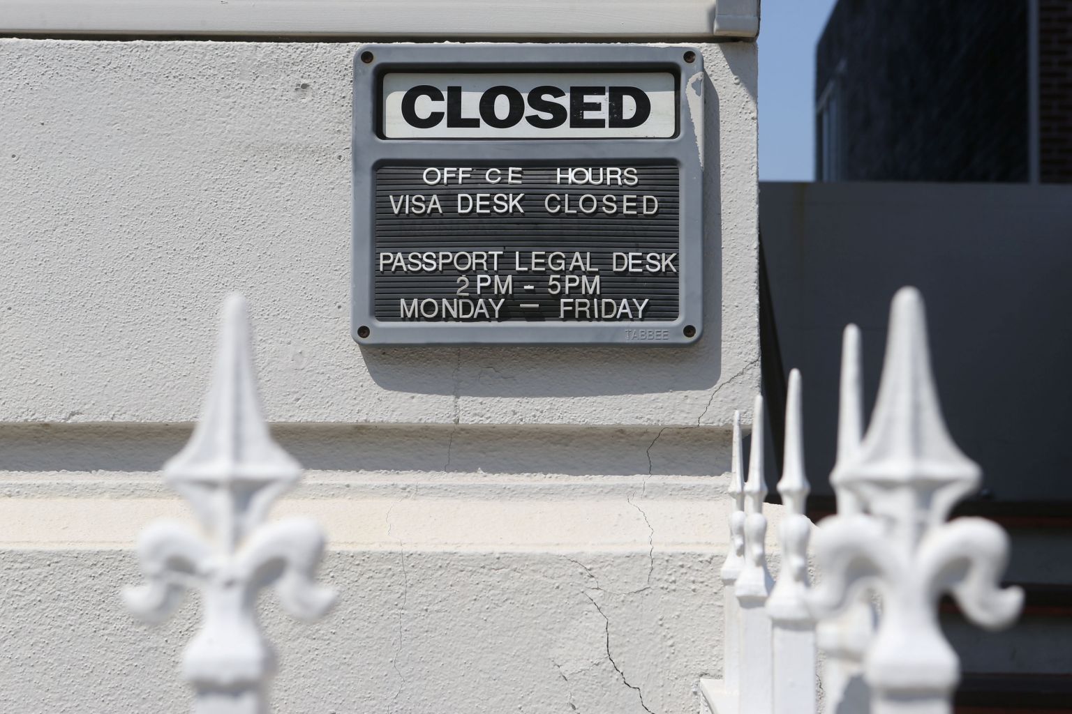 A sign on the Russian Consulate building in San Francisco, California, Sept 1, 2017.