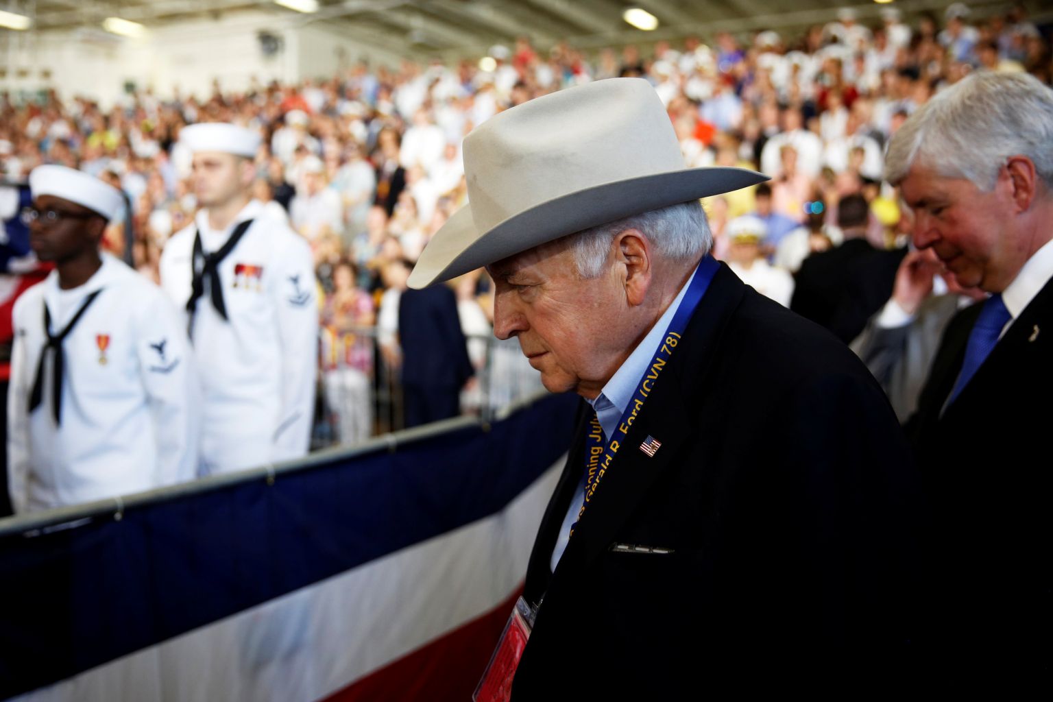 Former US Vice-President Dick Cheney attends the commissioning ceremony aboard the aircraft carrier USS Gerald R. Ford at Naval Station Norfolk in Norfolk, Virginia on July 22, 2017.