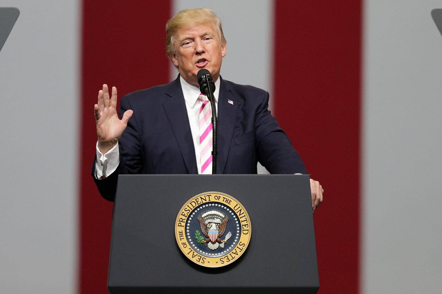 President Donald Trump speaks to supporters during a rally at the Von Braun Centre in Huntsville, Alabama, on Sept 22, 2017.
