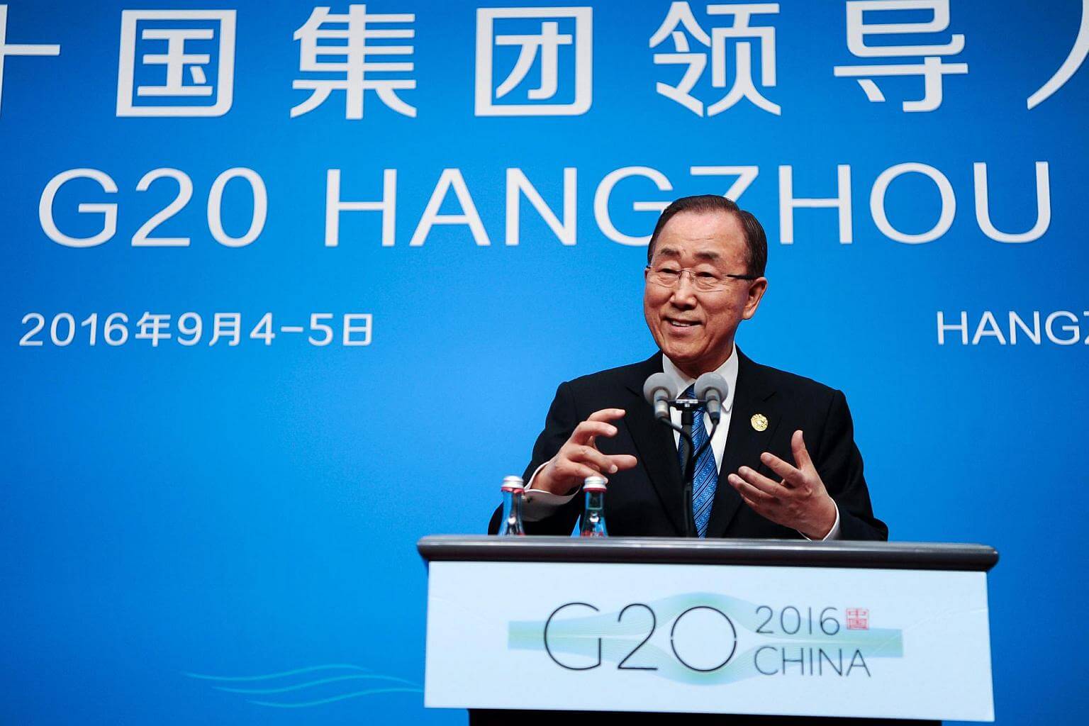 UN Secretary-General, Ban Ki Moon speaks during a press conference at the G20 Summit in Hangzhou, China on Sept 4, 2016.