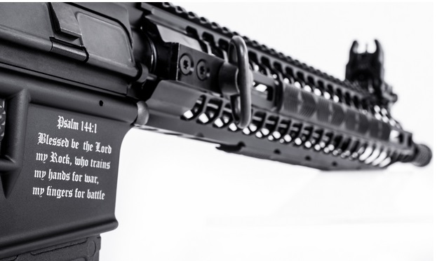 Screenshot of the Crusader rifle with Bible verse inscribed on its handle, as advertised on the manufacturer's website.
