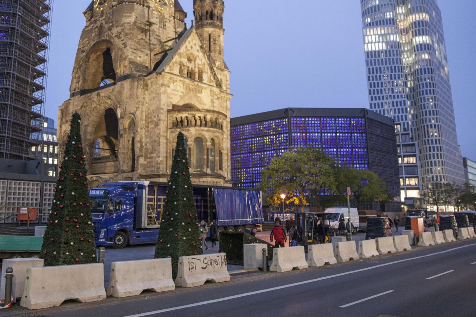 Concrete barriers were placed as a security measure around Breitscheidplatz square in preparations for the Christmas market that will take place later this month, at the central 'Mitte' district in Berlin, Germany, on Nov 9, 2017.