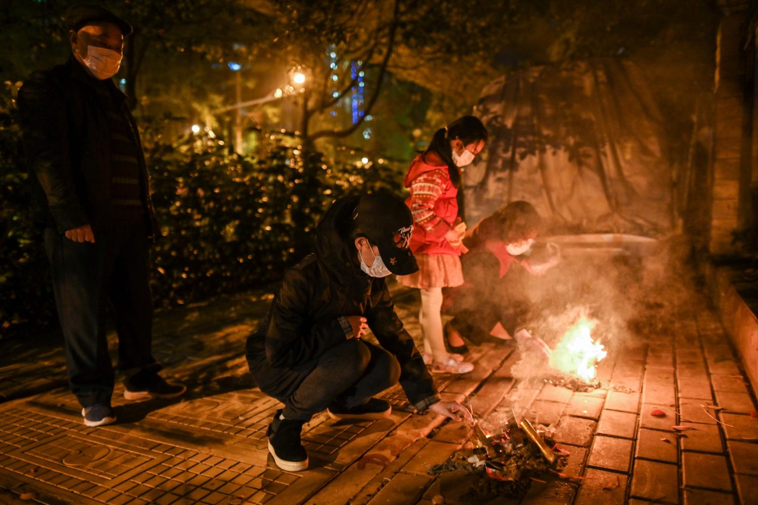 Residents on Friday burned joss paper, a tradition which they believe sends money and wealth to deceased relatives, on sidewalks and within the confines of their barricaded housing compounds.