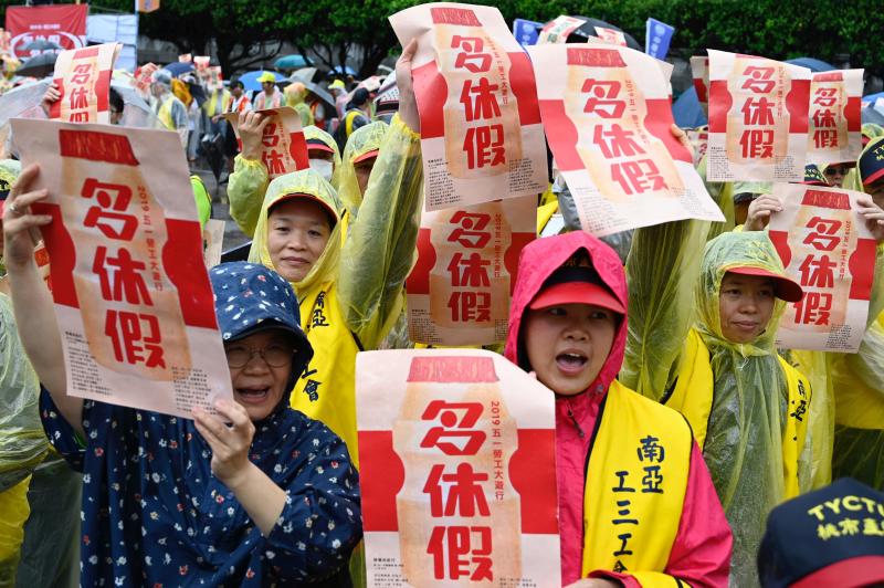Undeterred by downpour, workers in Taiwan demand more paid leave and security