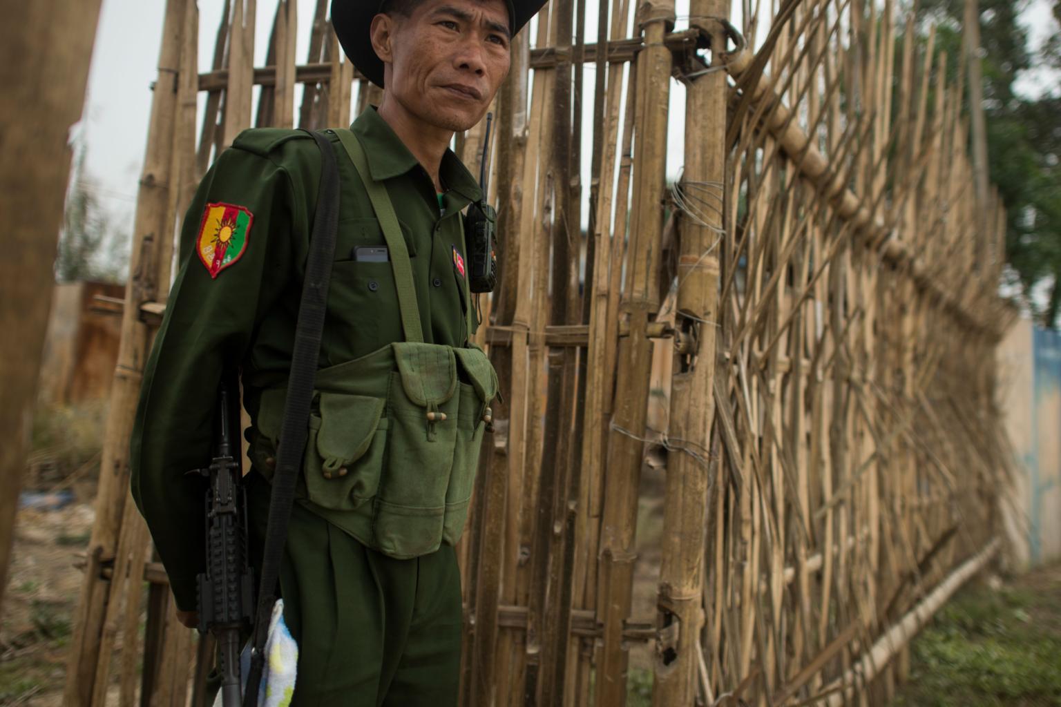 An armed Pan Say militiaman guarding an area in the Shan state border town of Muse on Jan 12, 2019.