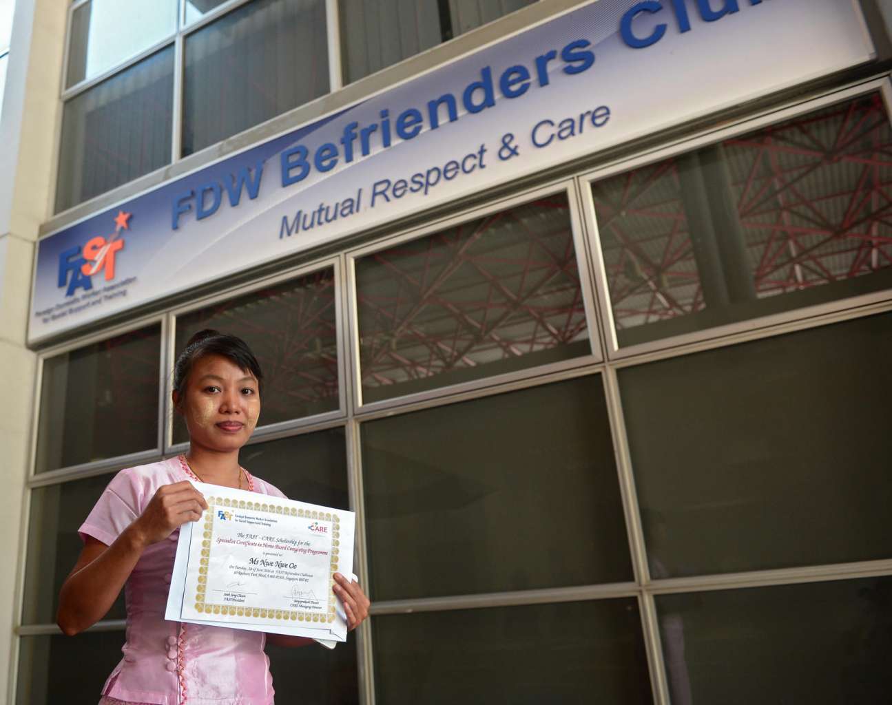 Ms Nwe Nwe Oo, recipient of a scholarship from Fast, who will begin classes from July 10.