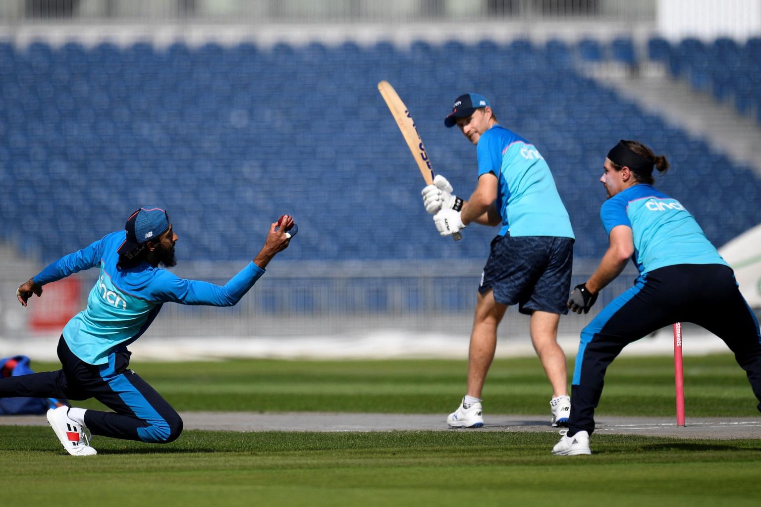 (From left) England's Haseeb Hameed, Joe Root and Rory Burns attends a team practice session on Sept 8, 2021.