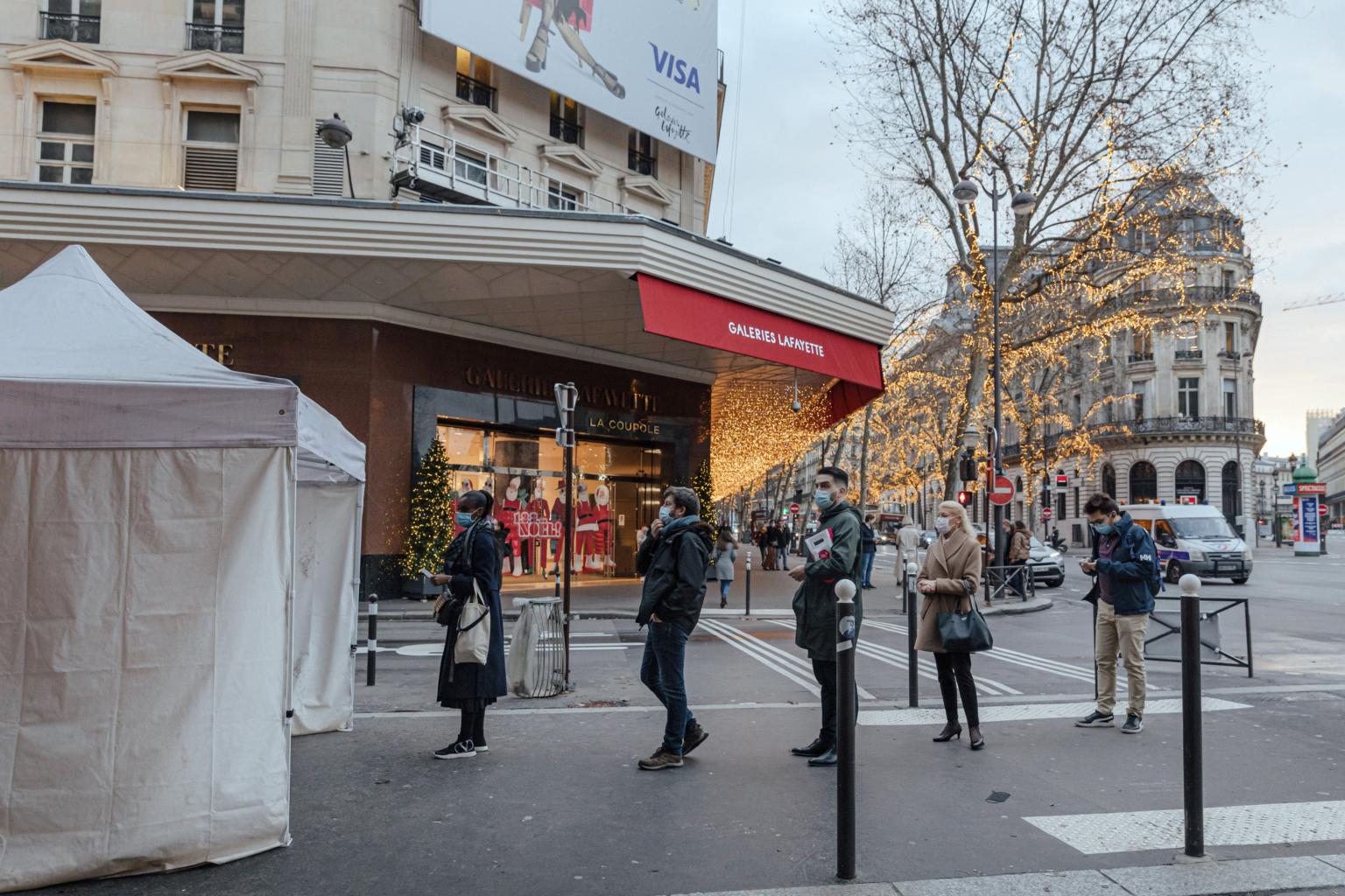 People wait for rapid Covid-19 testing at a mobile site in Paris on Dec 30, 2021.