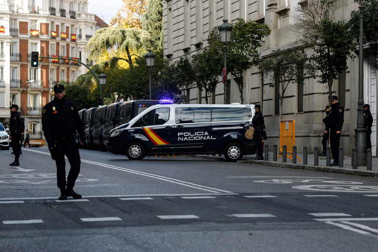 A police van carrying Catalan separatist leaders arrives at the Supreme Court in Madrid on Dec 1, 2017.