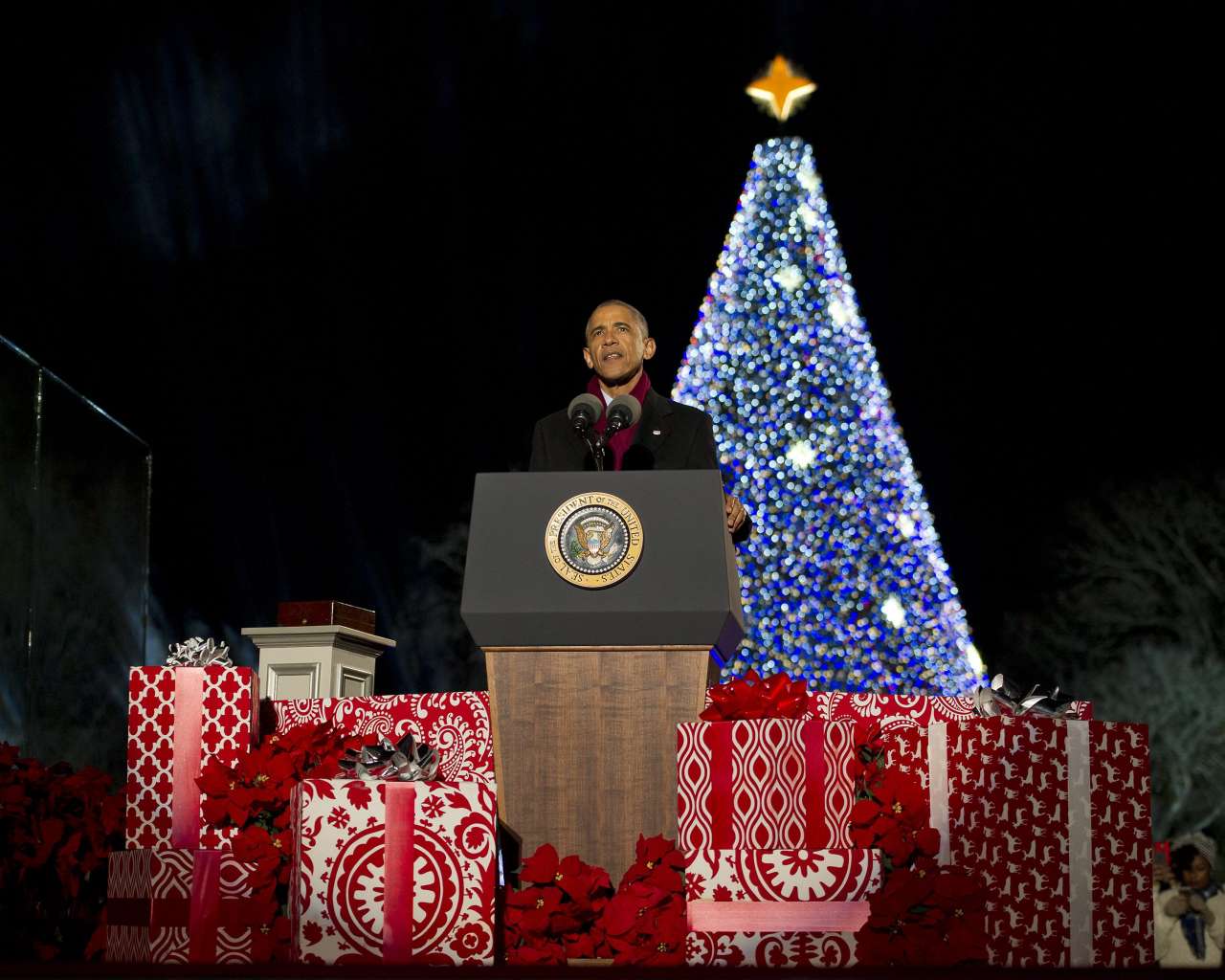 US President Barack Obama lights the National Christmas Tree in Washington, DC on Dec 1.