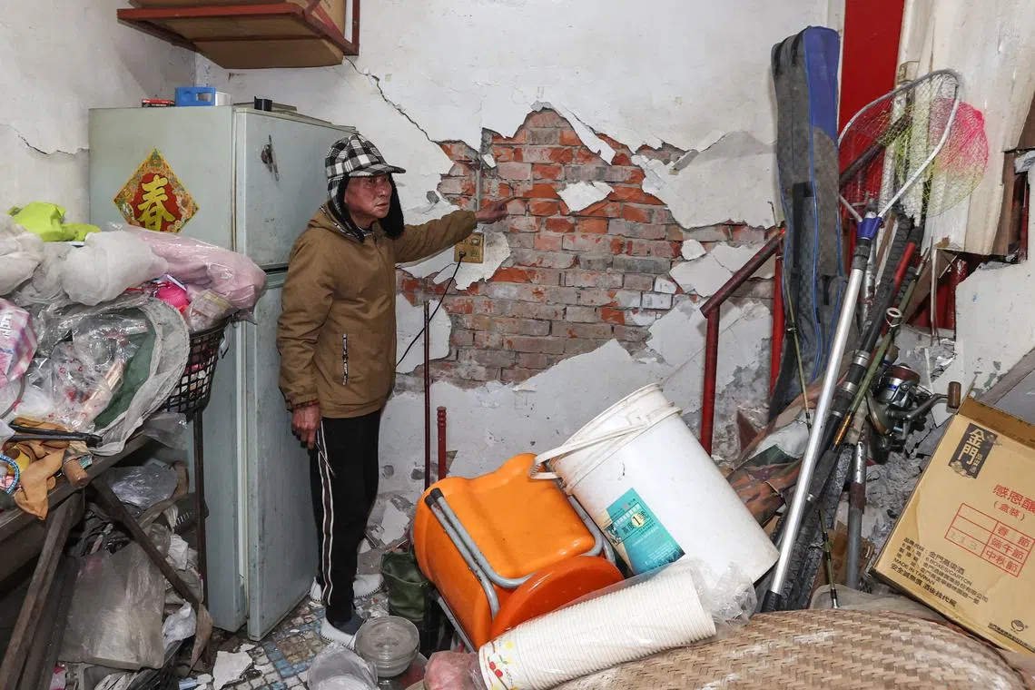 A collapsed wall of a house seen after an earthquake in Lucao township, Chiayi county in Taiwan, on Jan 21.