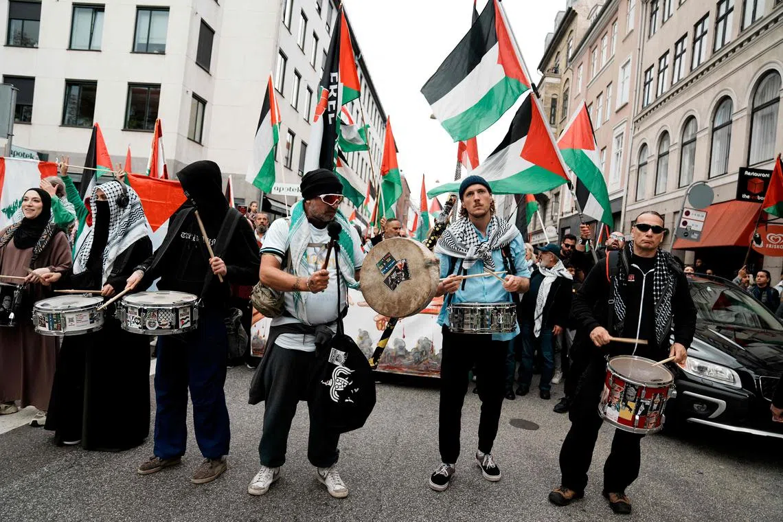 People marching in Copenhagen, Denmark, in support of Palestinians in Gaza on Oct 5.