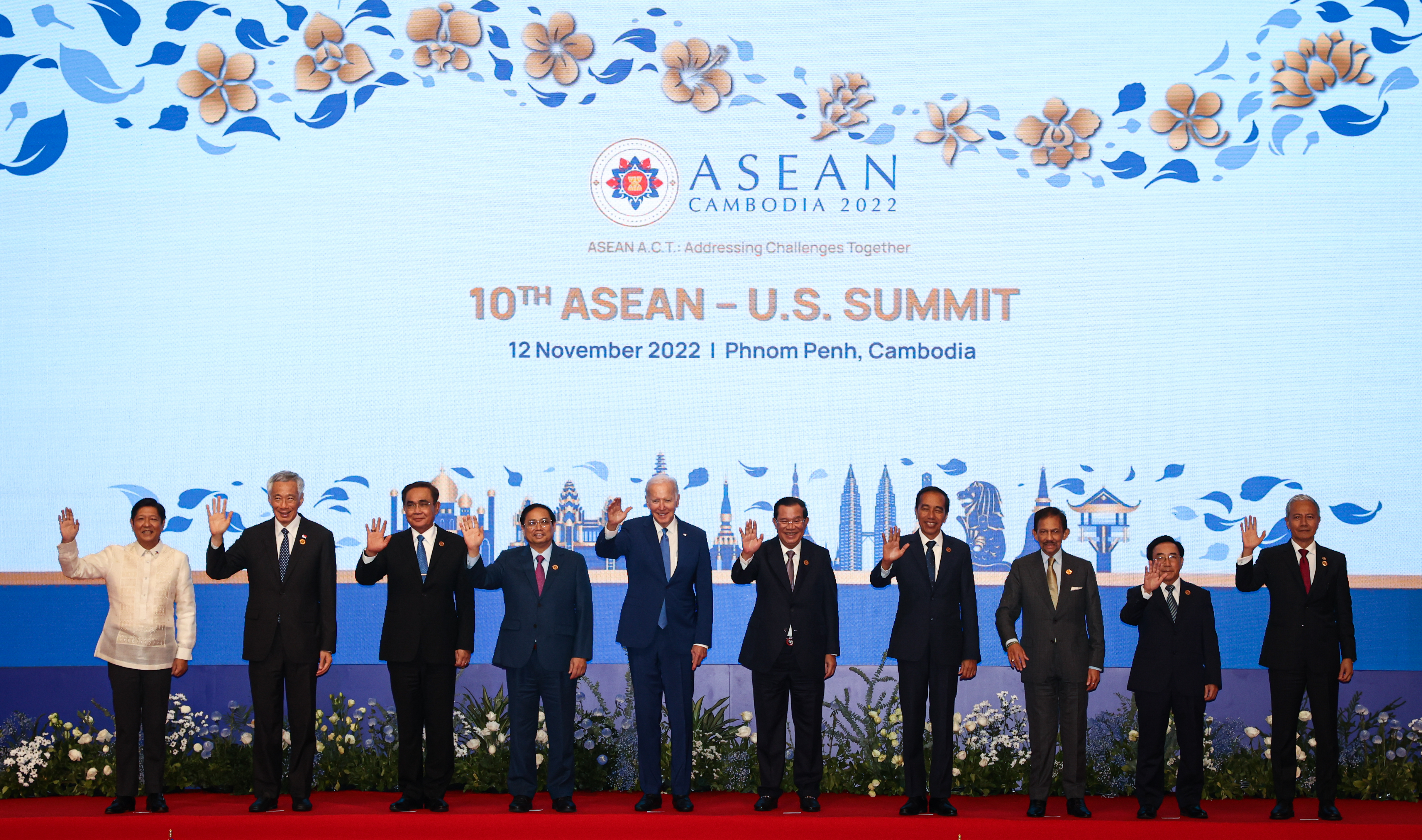 US President Joe Biden (fifth from left) with Asean leaders including PM Lee Hsien Loong (second from left) in Phnom Penh on Nov 12.