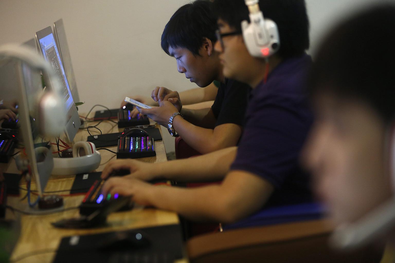 A Chinese man uses his mobile phone at an internet cafe in Beijing, China, June 26, 2015.
