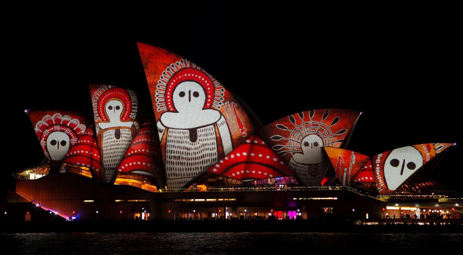 An indigenous Australian design is projected onto the Sydney Opera House during the annual Vivid Sydney light festival in Sydney on May 27, 2016.