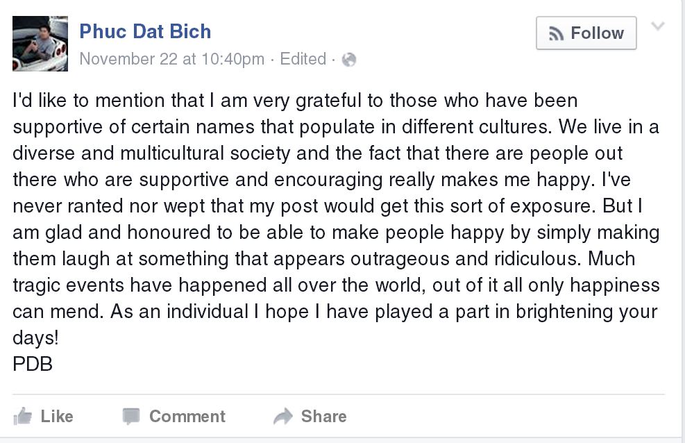 Asian Australian man with 'misleading' name Phuc Dat Bich thanks supporters after viral Facebook campaign