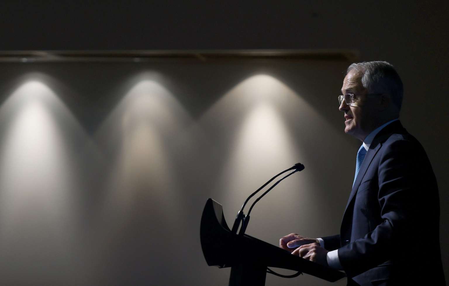 Australian Prime Minister Malcolm Turnbull announces the federal government's Cyber Security Strategy at the Australian Technology Park in Sydney, on April 21, 2016.