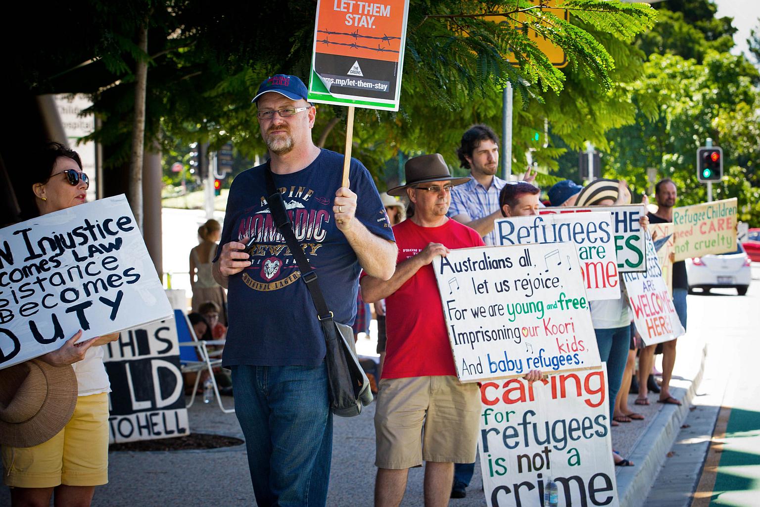 Pro-refugee activists keeping vigil outside the Mater Hospital in Brisbane on Feb 21, 2016.