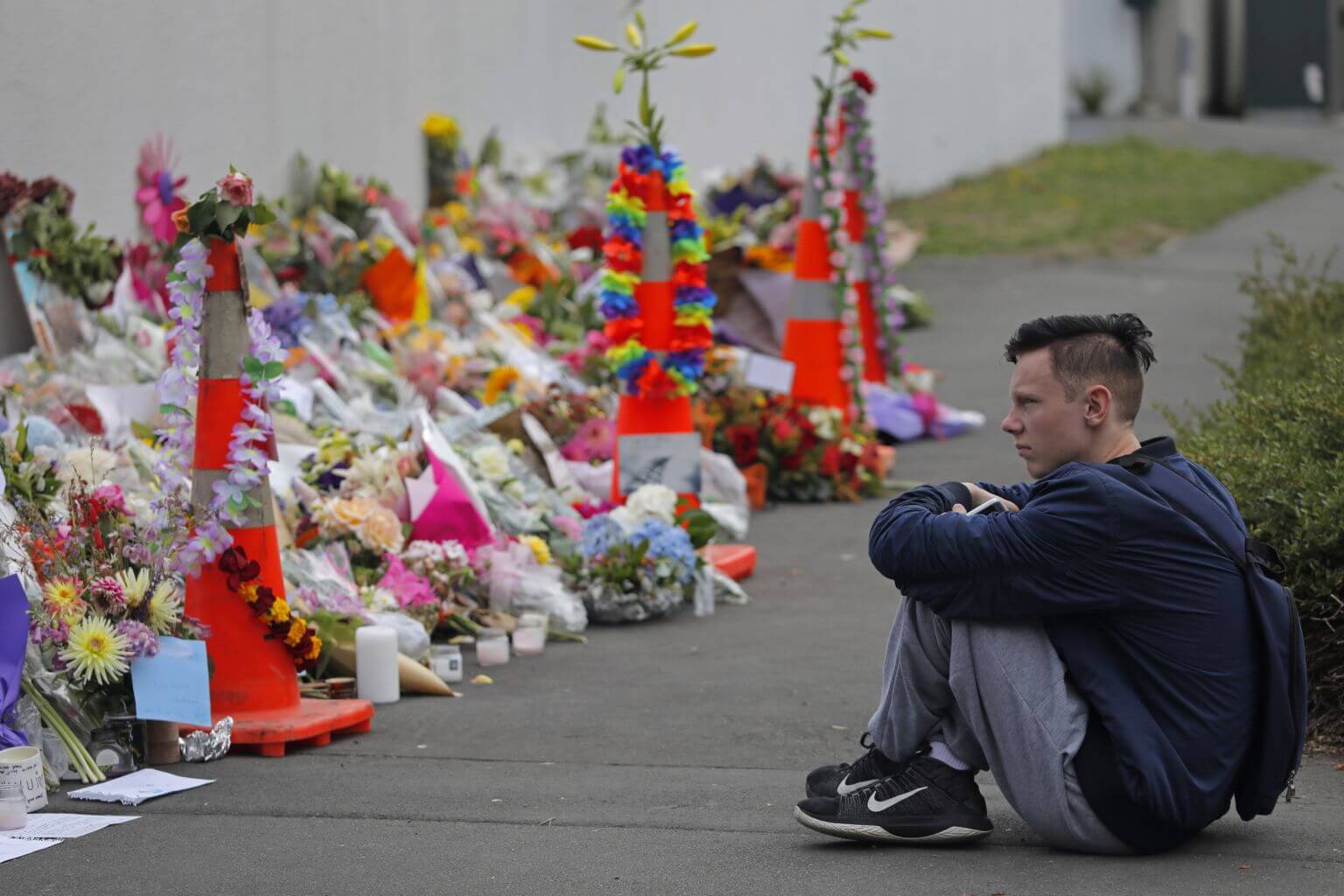 A student pays his respects at a park outside the Al Noor mosque in Christchurch, New Zealand, on March 18, 2019.