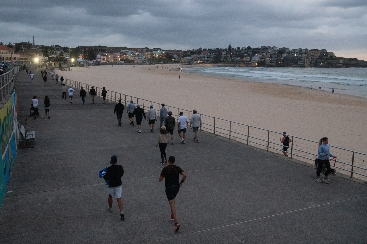 Members of the public exercise at Bondi Beach in Sydney on Oct 8, 2021.