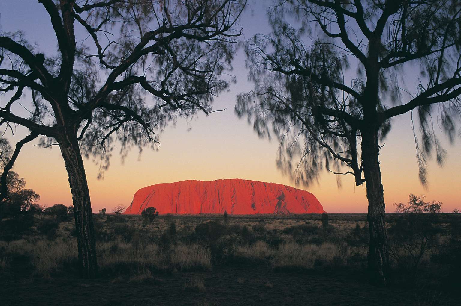 Uluru, a giant red rock that rises 348m above the desert, is surrounded by thousands of square kilometres of desolate Outback and forms a key part of Aboriginal creation mythology, attracting about 350,000 tourists a year.
