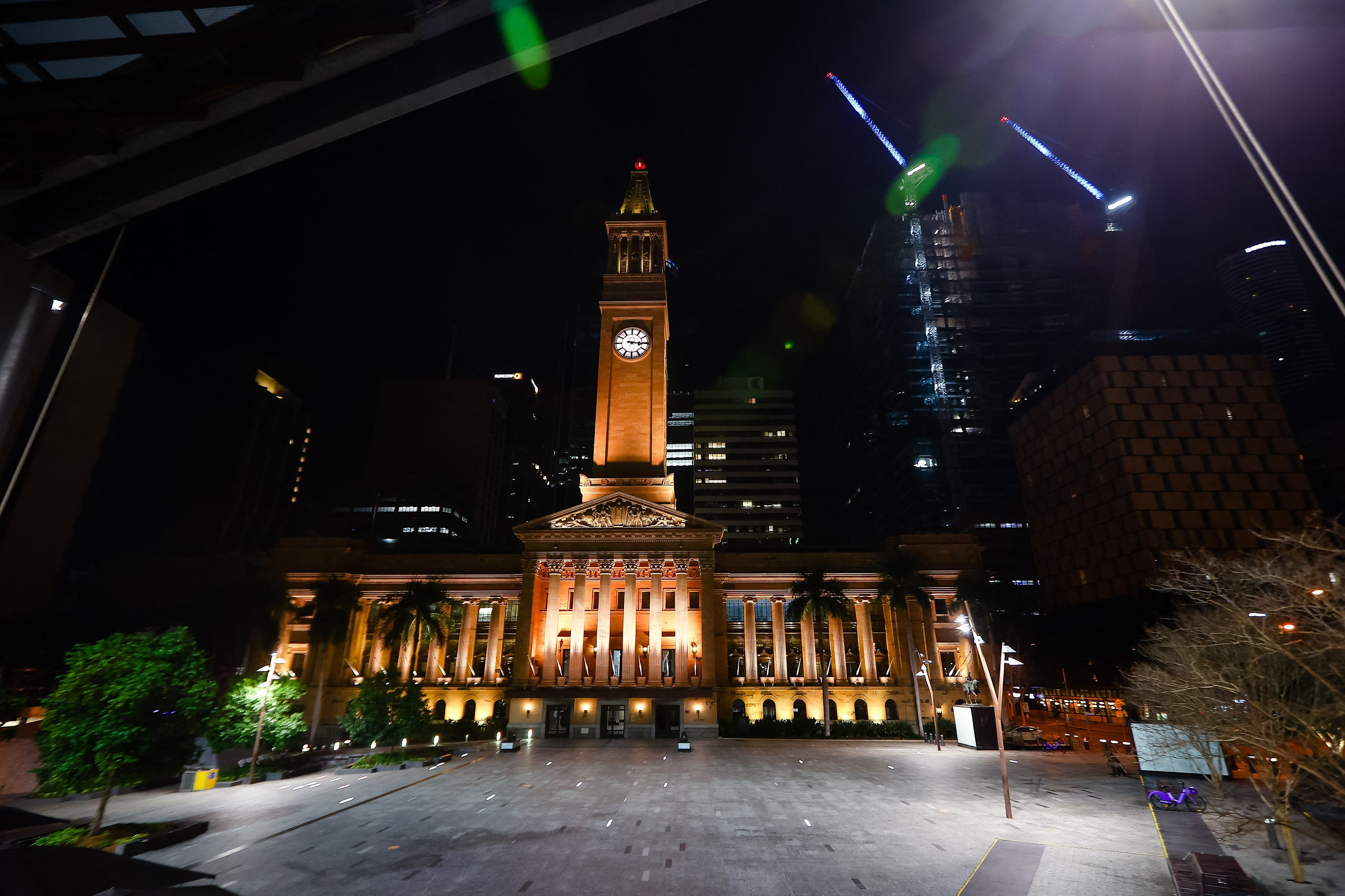 An empty King George Square in central Brisbane early on Aug 1, 2021.