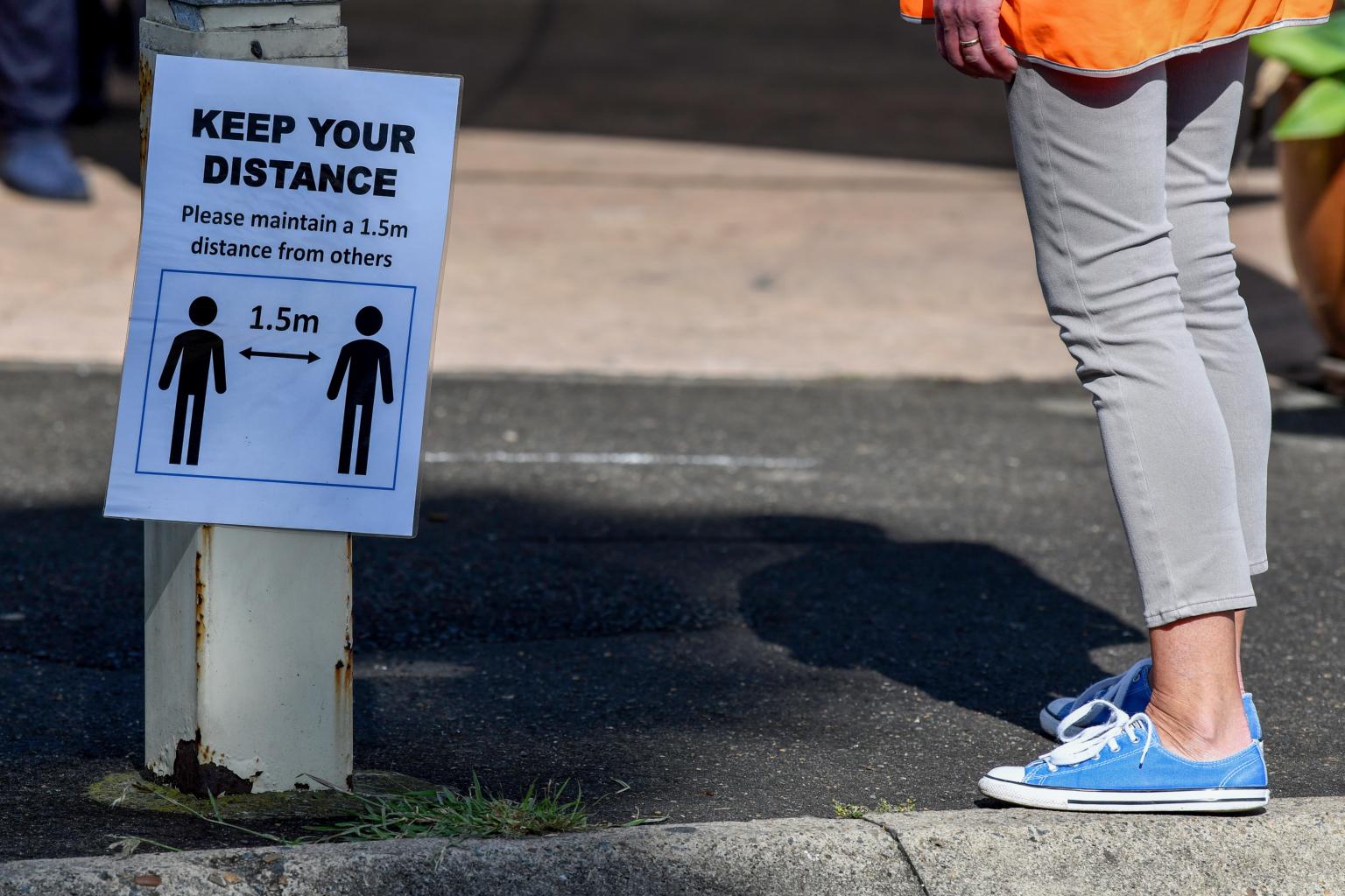 A social distancing signage is seen at the entrance of the Sydney Fish Market in , Australia, on April 10, 2020.