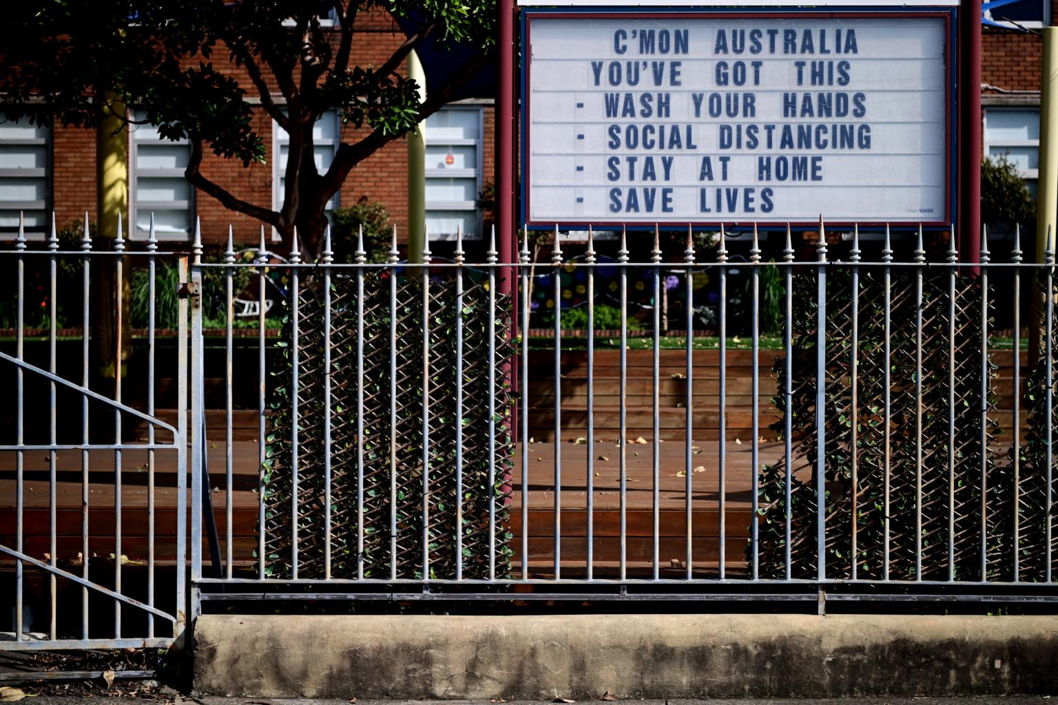 A sign with tips to fight the coronavirus at a school at Observatory Hill in Sydney on April 13, 2020.