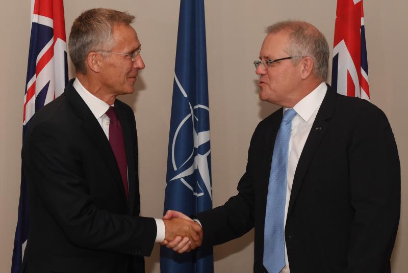 Nato Secretary General Jens Stoltenberg (left) shaking hands with Australian Prime Minister Scott Morrison during the former's two-day visit to Australia.