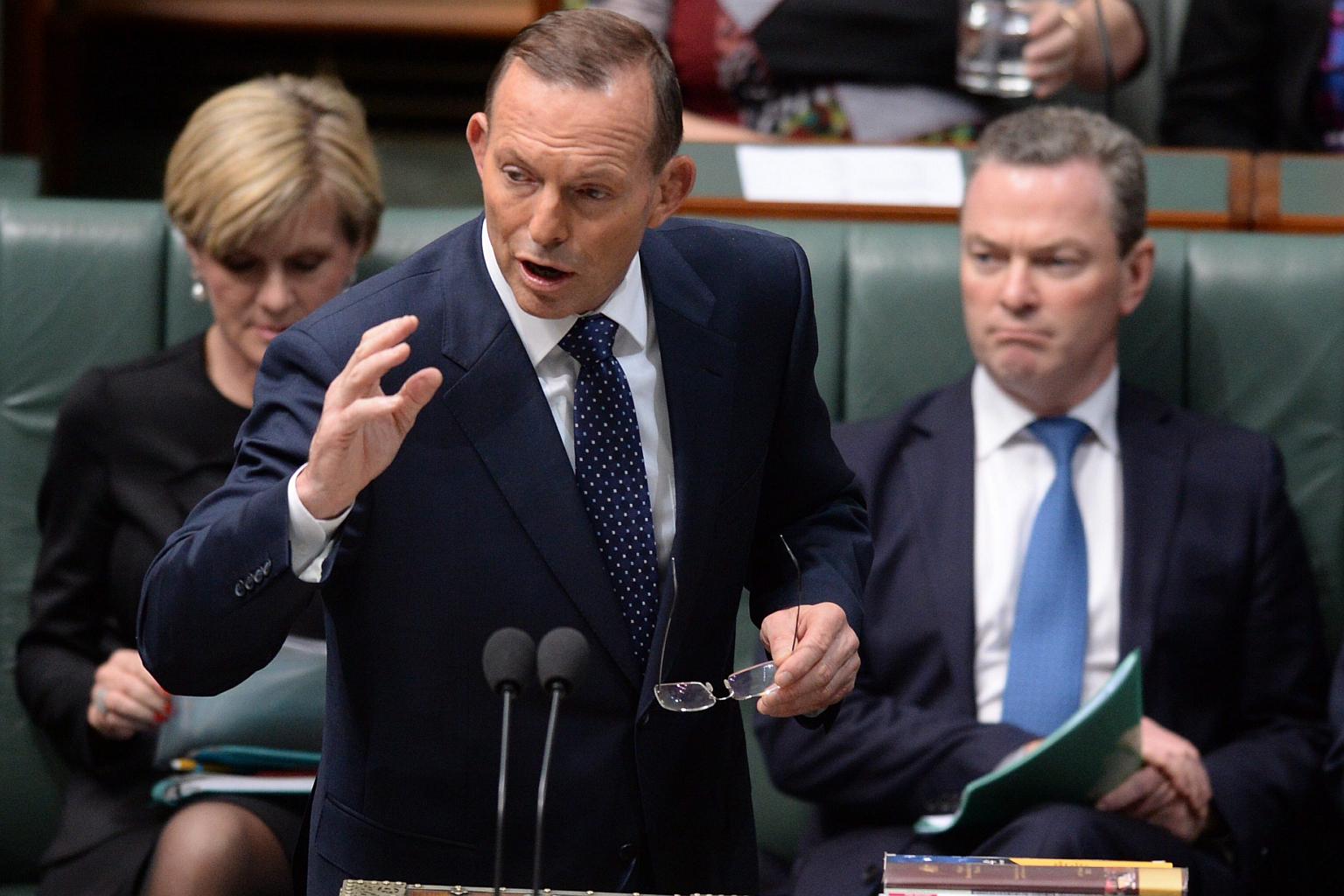 Australian Prime Minister Tony Abbott (centre) speaks about the Free Trade Agreement (FTA) with China during debate in the House of Representatives at Parliament House in Canberra, Australia on Sept 8, 2015.