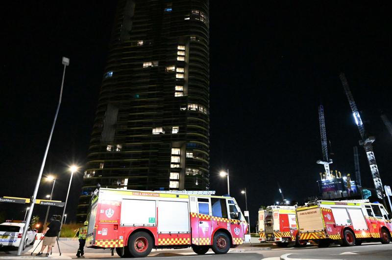 Fire trucks are seen in front of the 38-storey Opal Tower in Sydney, after residents said they heard cracking noises, on Dec 25, 2018.