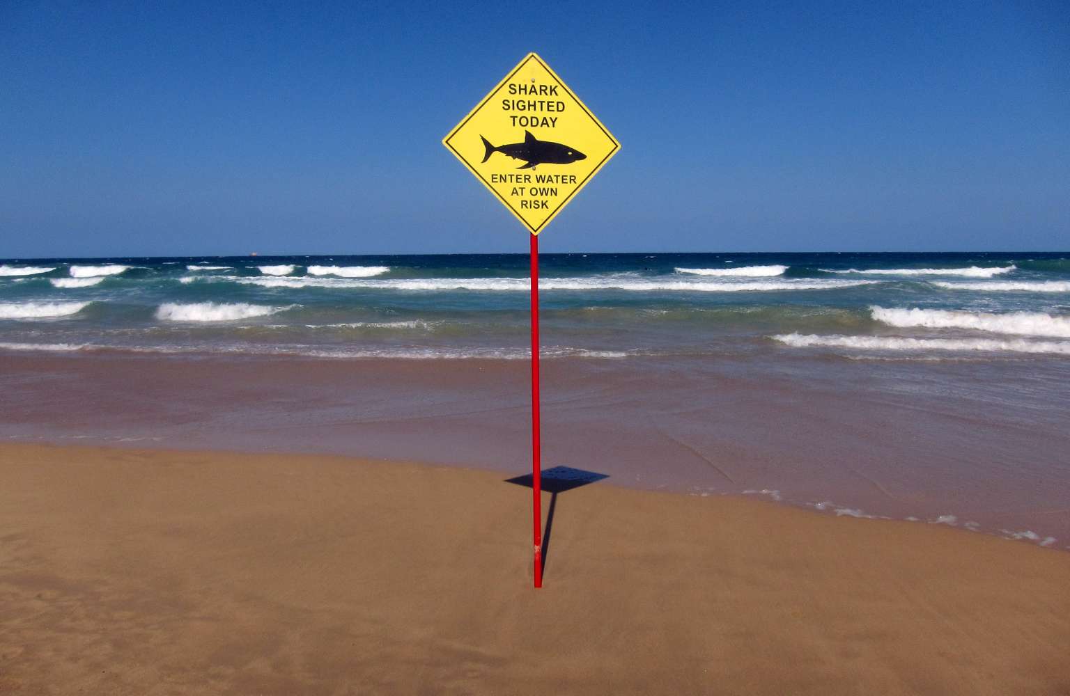 A sign erected on Manly Beach indicates a shark sighting in Sydney, Australia, on Nov 24, 2015.