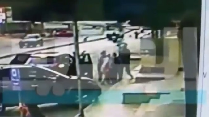 A screenshot from a grainy video shown on Lebanese TV, said to show the moment the mother tried to get her children back.