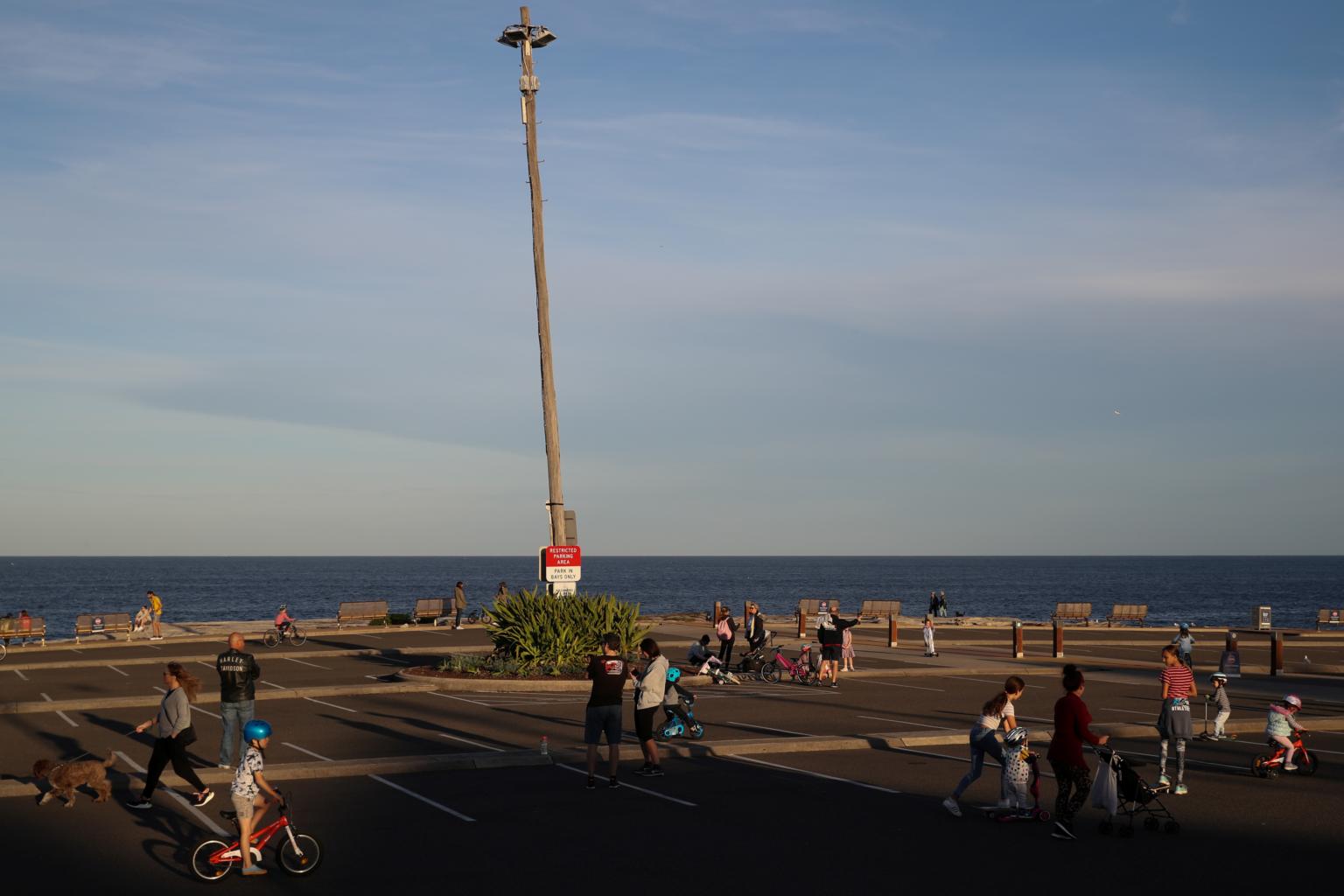 Families enjoy an evening on the coast amid the easing of restrictions in Sydney, on May 6, 2020.
