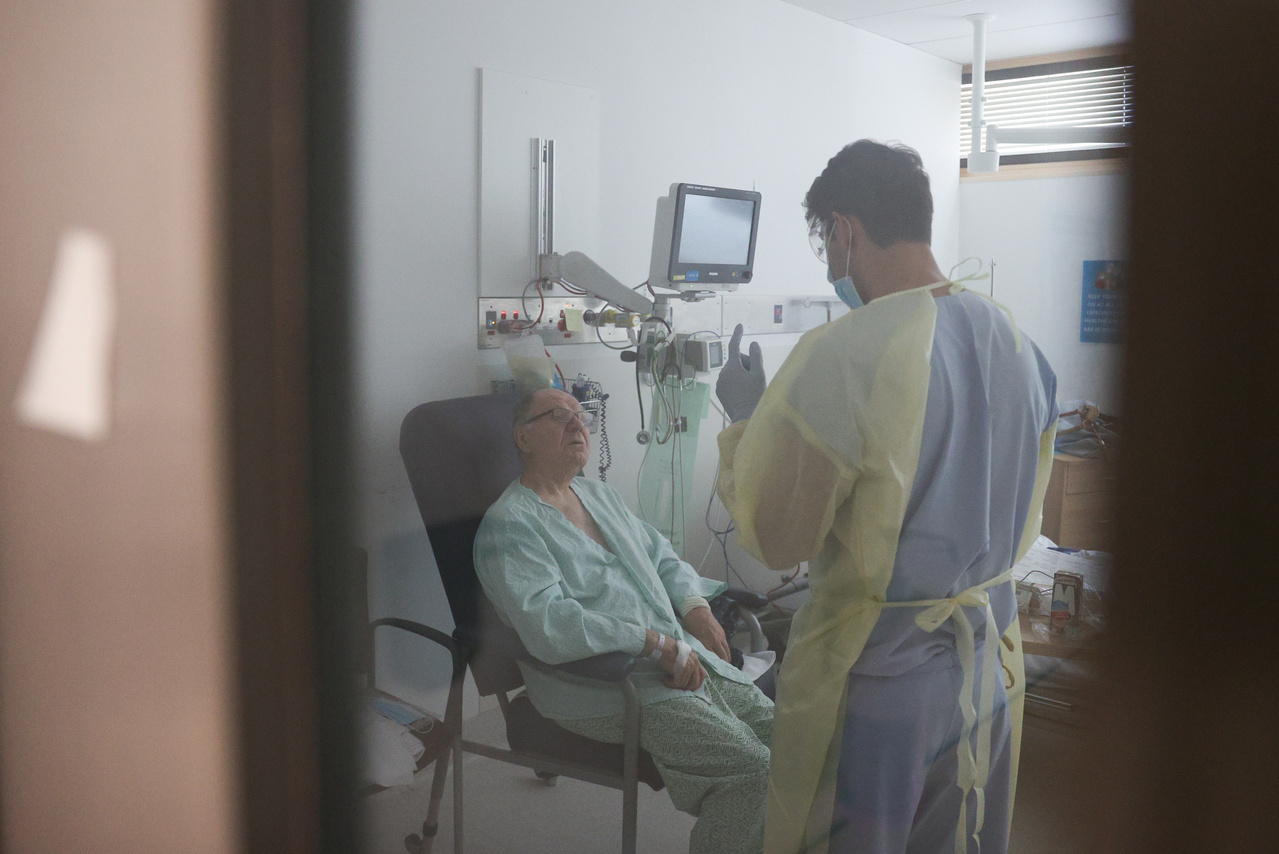 A patient in a Covid-19 ward at Westmead Hospital in Sydney on May 12, 2020.