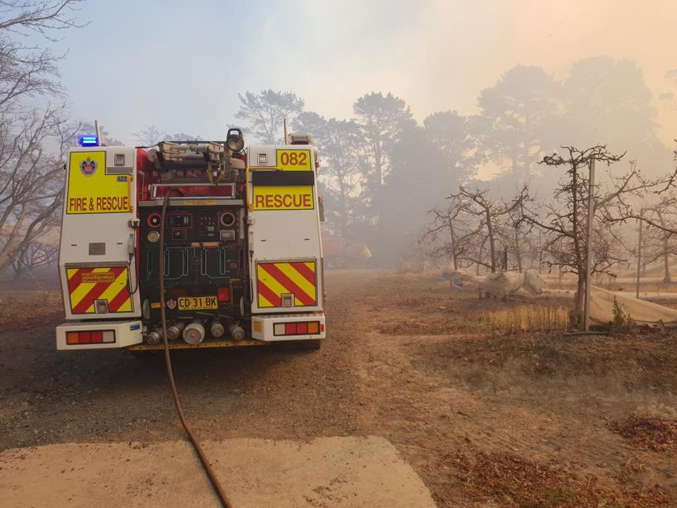 A fire engine is parked near a bushfire in New South Wales, Australia, on Aug 15, 2018.