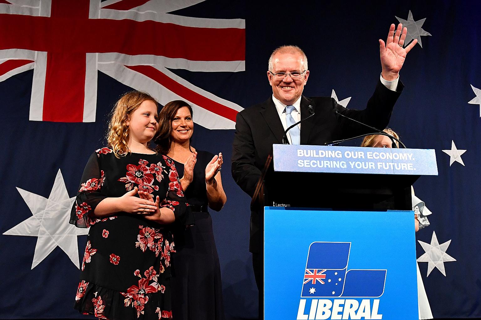 Australian Prime Minister Scott Morrison (right) with family members after winning election, in Sydney, Australia, on May 18, 2019.