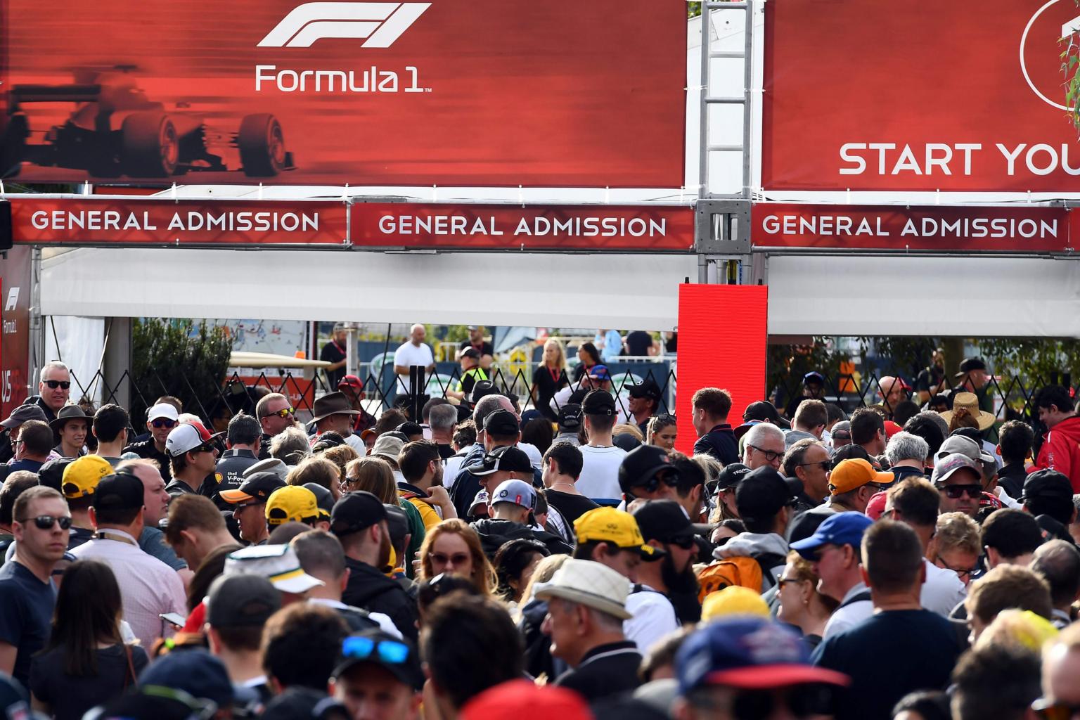 Fans queue up outside the gates prior to the first practice session for the Formula One Australian Grand Prix before it was cancelled, in Melbourne on March 13, 2020.