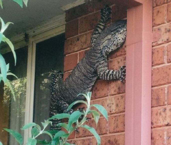He managed to take a photo of the lizard - a goanna, or lace monitor - with his digital camera and subsequently submitted it to his local newspaper, The Border Mail.